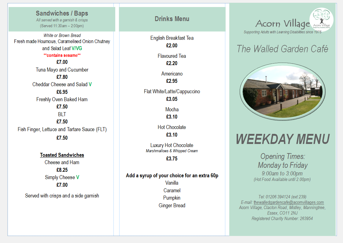 Welcome to The Walled Garden Cafe, a charming nook nestled in Acorn Village, Manningtree. This delightful establishment offers a menu filled with comforting dishes that evoke warmth and satisfaction. Diners rave about the crispy jacket potatoes and generous sausage rolls, which are particularly beloved among regulars. Guests can also indulge in freshly prepared sandwiches, with the prawn sandwich receiving special mention for its delightful taste.
